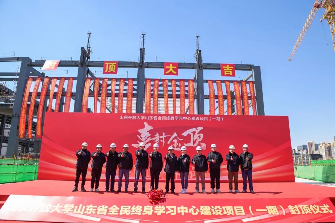 喜封金頂——山東開放大學山東省全民終身學習中心建設項目(一期)文體館順利封頂