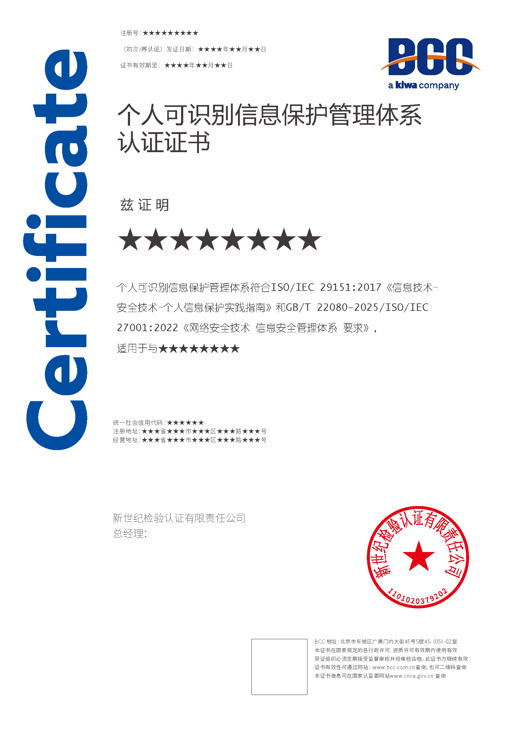 本頁(yè)涉及的認(rèn)證服務(wù)中均有對(duì)應(yīng)的《認(rèn)證實(shí)施規(guī)則》,BCC擁有其最終解釋權(quán)。任何組織及個(gè)人未經(jīng)BCC許可,不得以任何形式全部或部分使用(法律要求除外)認(rèn)證相關(guān)信息。如需獲取相關(guān)實(shí)施規(guī)則請(qǐng)用以下方式聯(lián)系獲取:電話:010-58579316   郵箱:fwjs@kiwa.cn