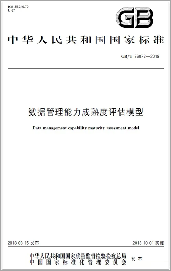DCMM是《數(shù)據(jù)管理能力成熟度評估模型》GB/T 36073-2018國家標(biāo)準(zhǔn),英文簡稱:(Data management Capability Maturity Model)。