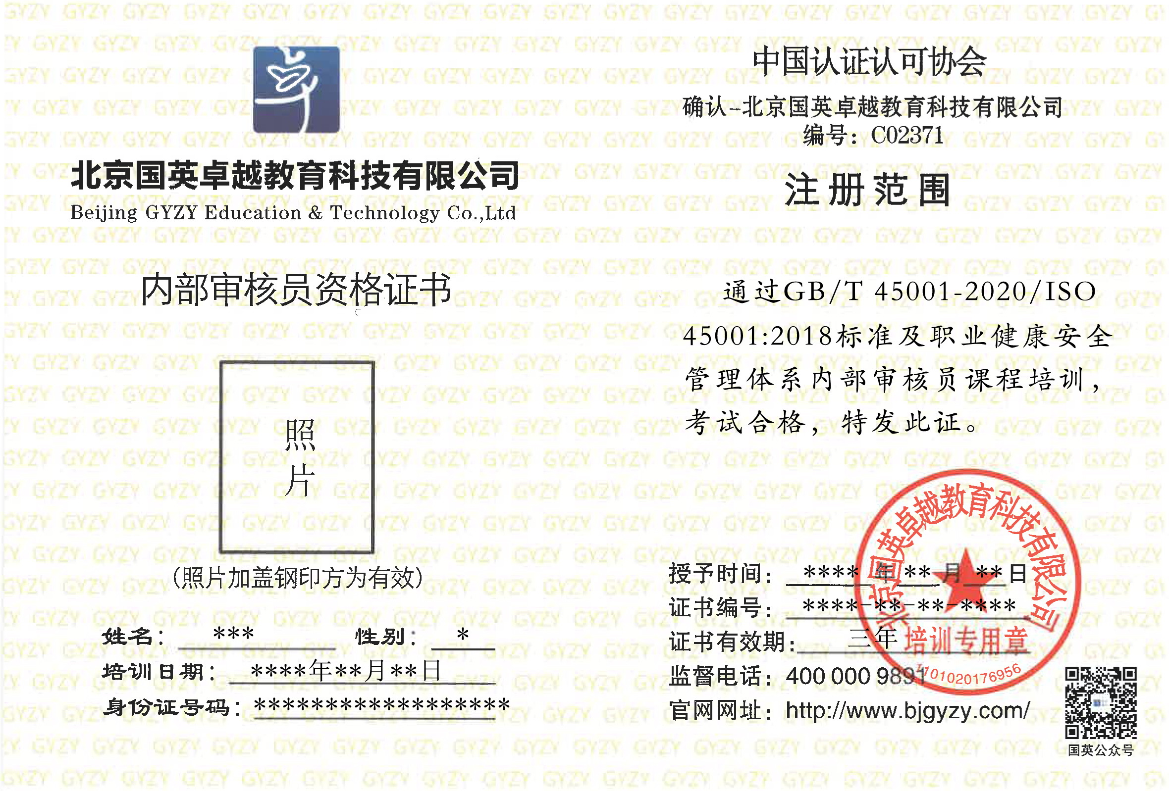 國(guó)家注冊(cè)質(zhì)量管理體系高級(jí)審核員、環(huán)境管理體系高級(jí)審核員、職業(yè)健康安全管理體系高級(jí)審核員、國(guó)家清潔生產(chǎn)審核師、環(huán)保工程師【詳細(xì)】 -