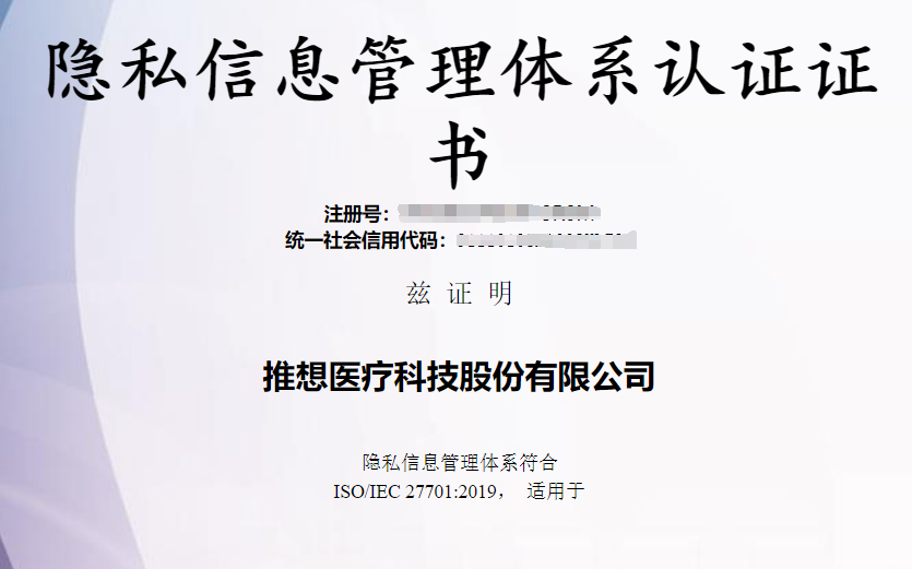 安全保護(hù)再上新臺(tái)階!推想醫(yī)療獲ISO27701隱私信息管理體系證書